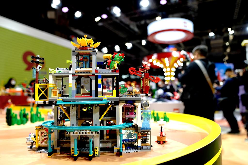 11月5日,在第五届进博会消费品展区拍摄的乐高展品。新华社记者 张建松 摄