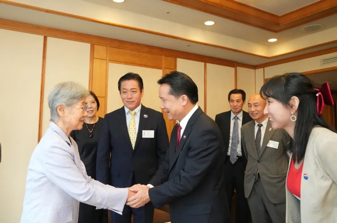 松崎君代先用中文表示感谢,接着说,“辛苦您了,这么远距离,(跨越)千山万水飞过来。”